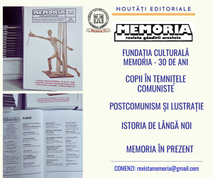 Numerele vechi disponibile ale Revistei Memoriale puteți achiziționa la prețul de 10/ ex. pentru numerele 1-64/65. Începând cu numerele 66/67 prețul se află afișat pe coperta fiecărui exemplar.